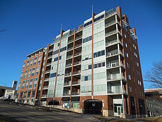 Description: View of the Westlake residential building from Battery Street, Burlington, Vermont, April 2017