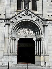 Description: Le portail de l'église Notre-Dame de l'Assomption, Bagnères-de-Luchon, Haute-Garonne, France.