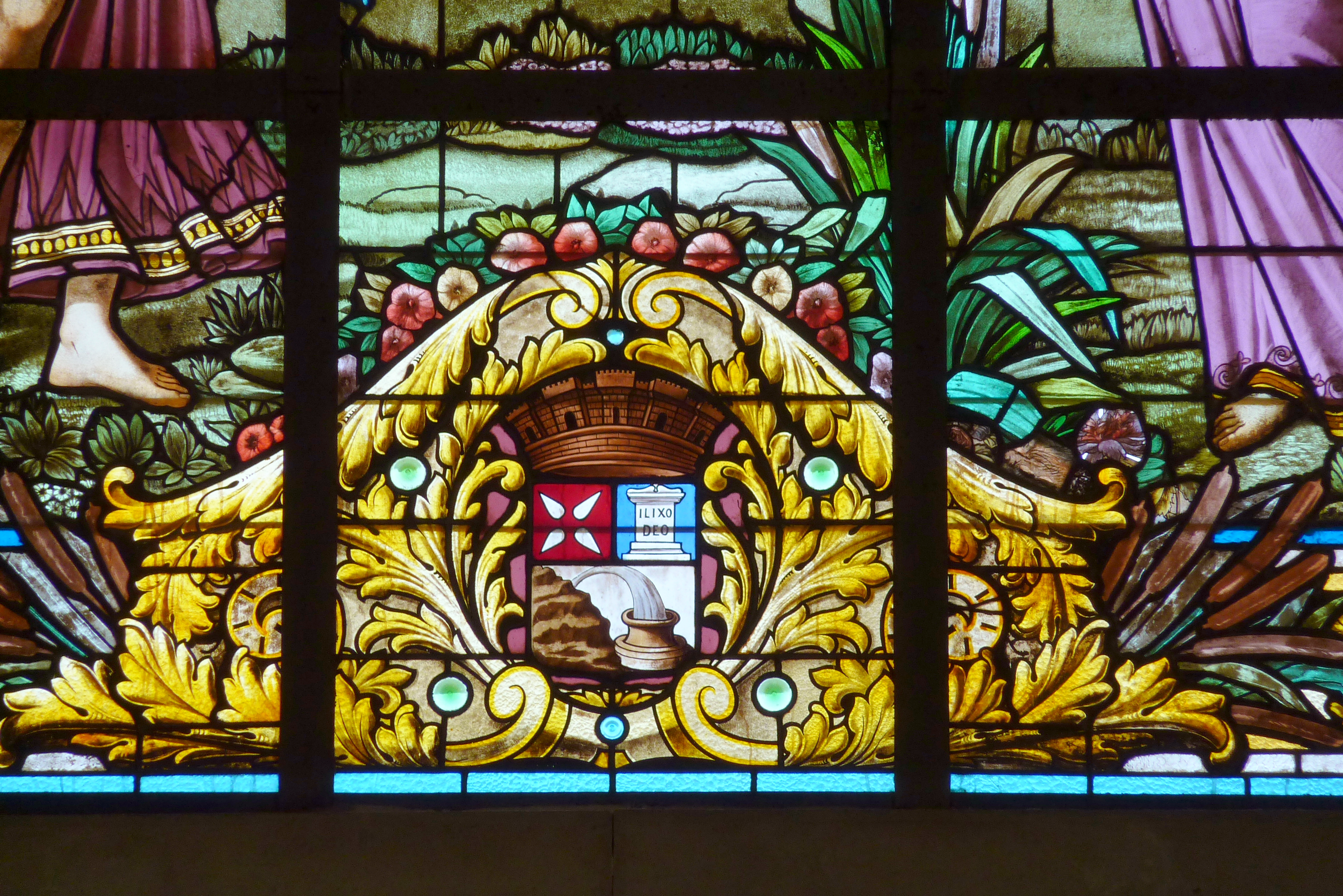 Description: Bleiglasfenster im Kurhaus von Bagnères-de-Luchon im Département Haute-Garonne der Region Midi-Pyrénées (Frankreich)