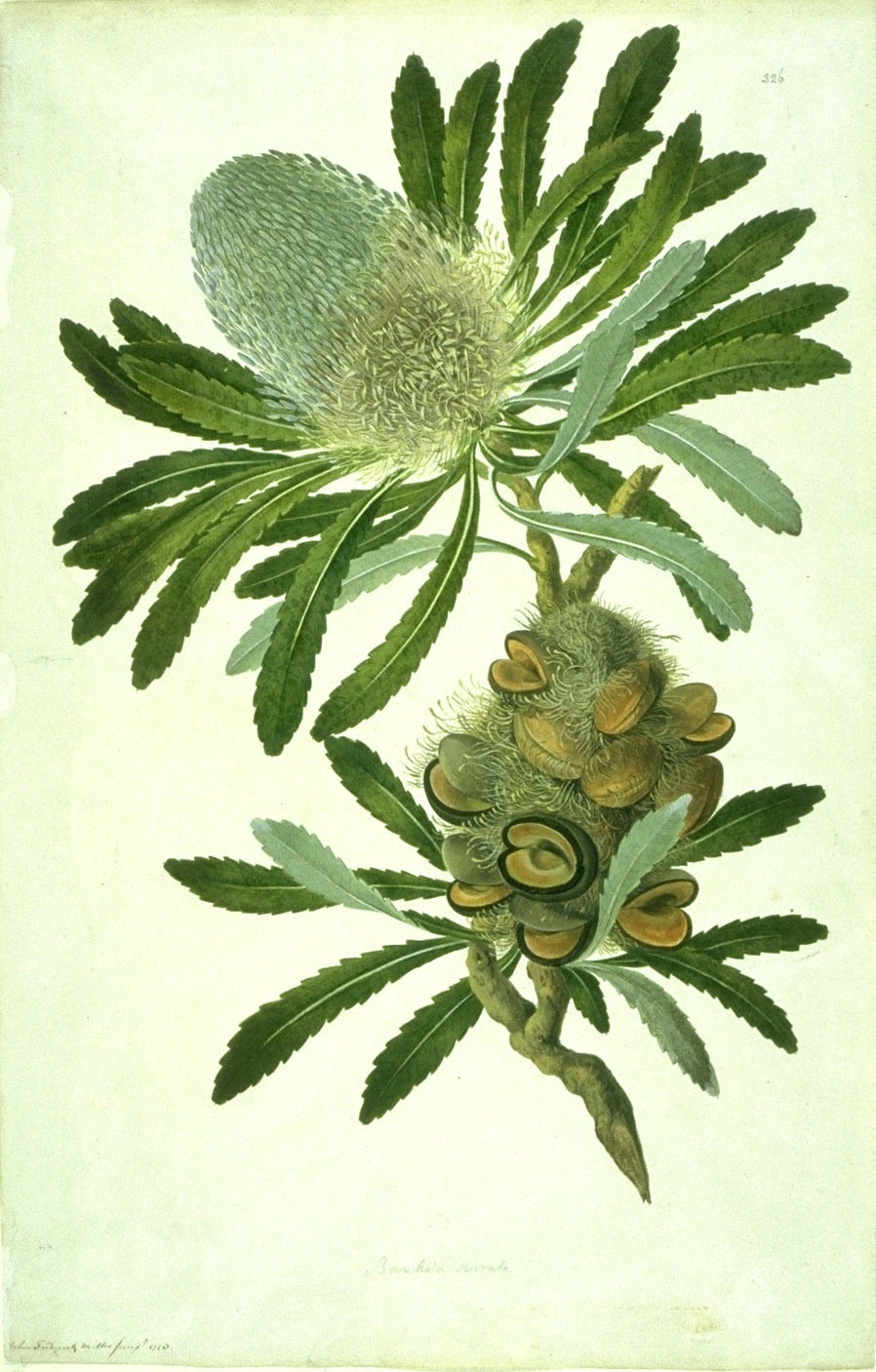 Title: Banksia serrata watercolour from Bank's Florilegium