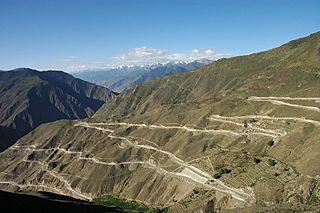 Description: Ninety-nine Turns. Hairpin turns along the Sichuan-Tibet Highway