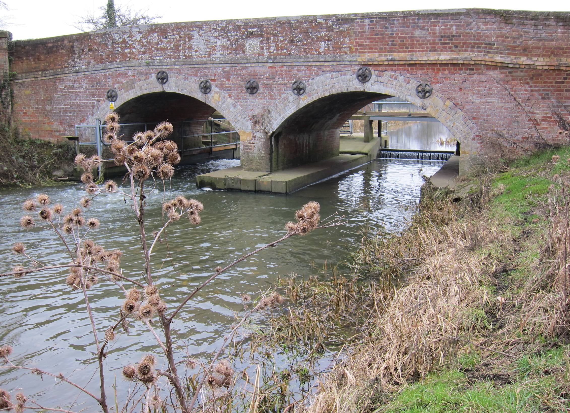 Description: View of Billingford bridge & weir of River Waveney, Suffolk, England