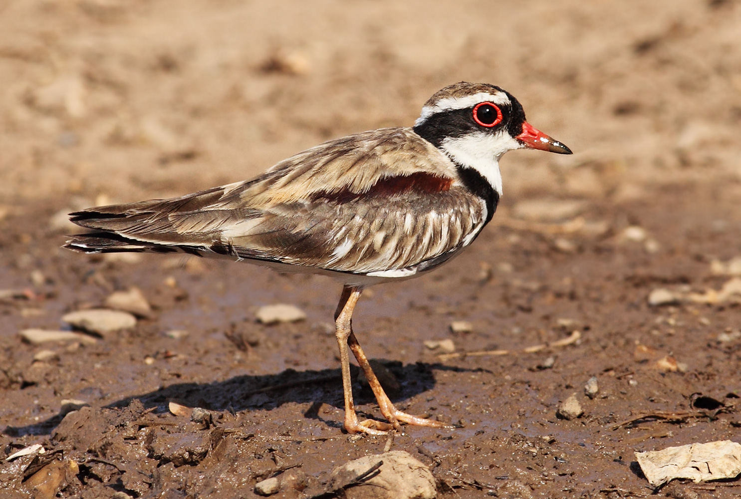Description: Black-fronted Dotterel (Elseyornis melanops) around a puddle in Katherine, Northern Territory, Australia