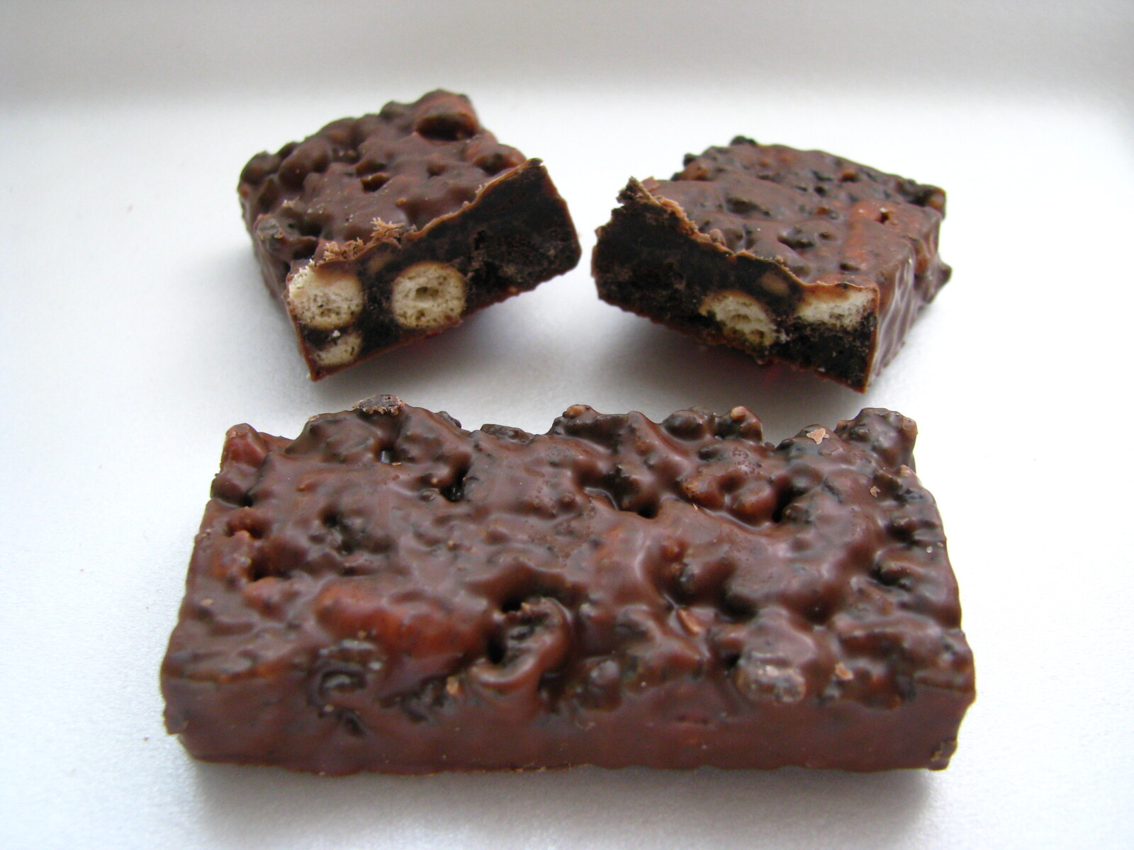 Description: Black Thunder chocolate bars, whole and cut to display cross-section.
