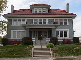 Description: Bradford-Pettis House, located at southwest corner of 39th Street and Harney in Omaha, Nebraska; seen from the east.