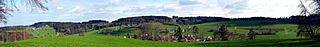 Description: Picture shows the village of Braunau with hamlets / canton of Thurgau in Switzerland; picture taken by me, Nouly. View from the Hüenersädel towards south-east. The long ridge forming the backdrop on the right is the Brunauer Berg, behind it the Heid. Panorama shot composed of single pictures using Photoshop.
