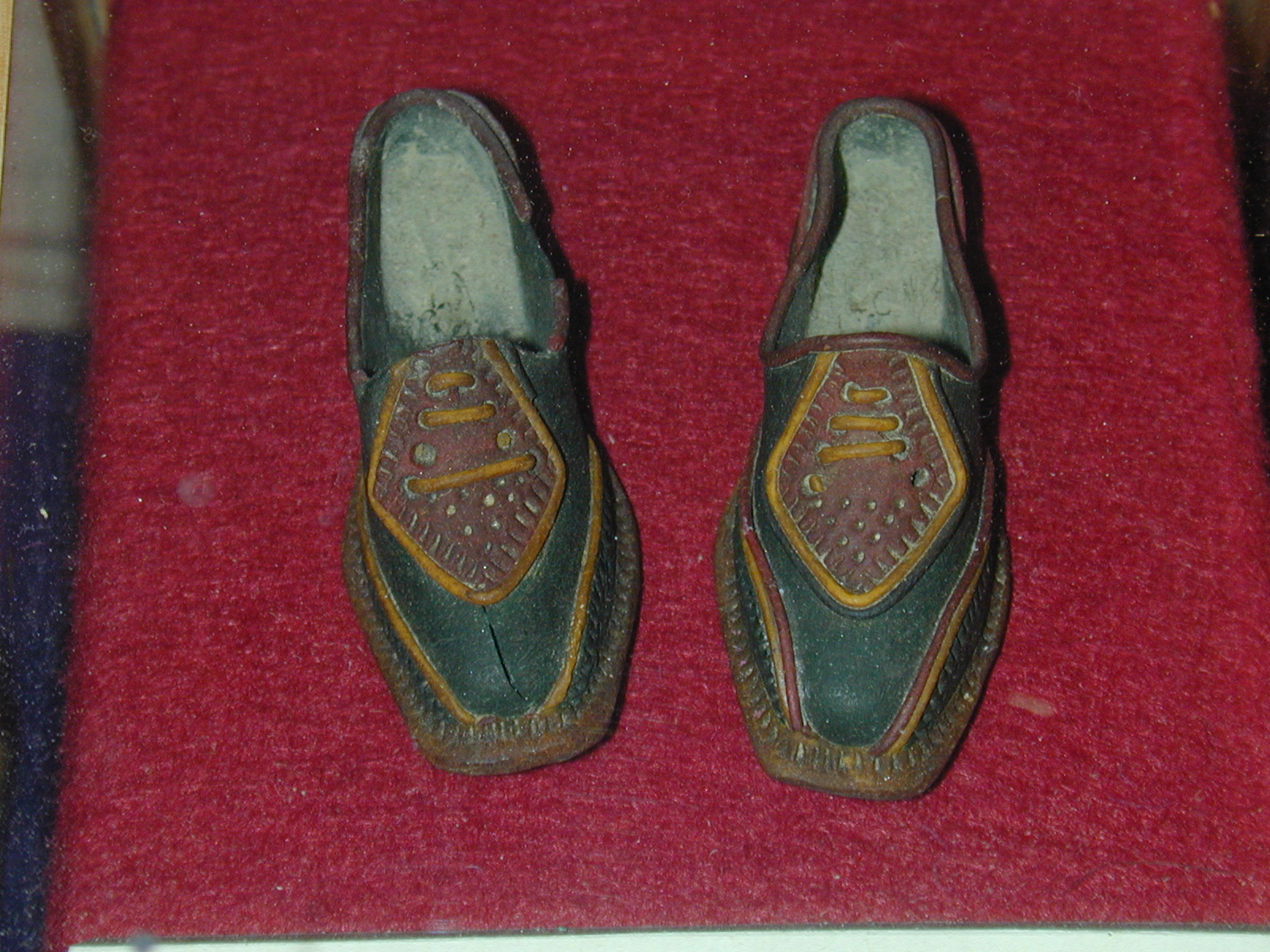 Description: Decorative shoes made from bread by Italian POW during WWII at Eden Camp. Taken 12 February 2004.