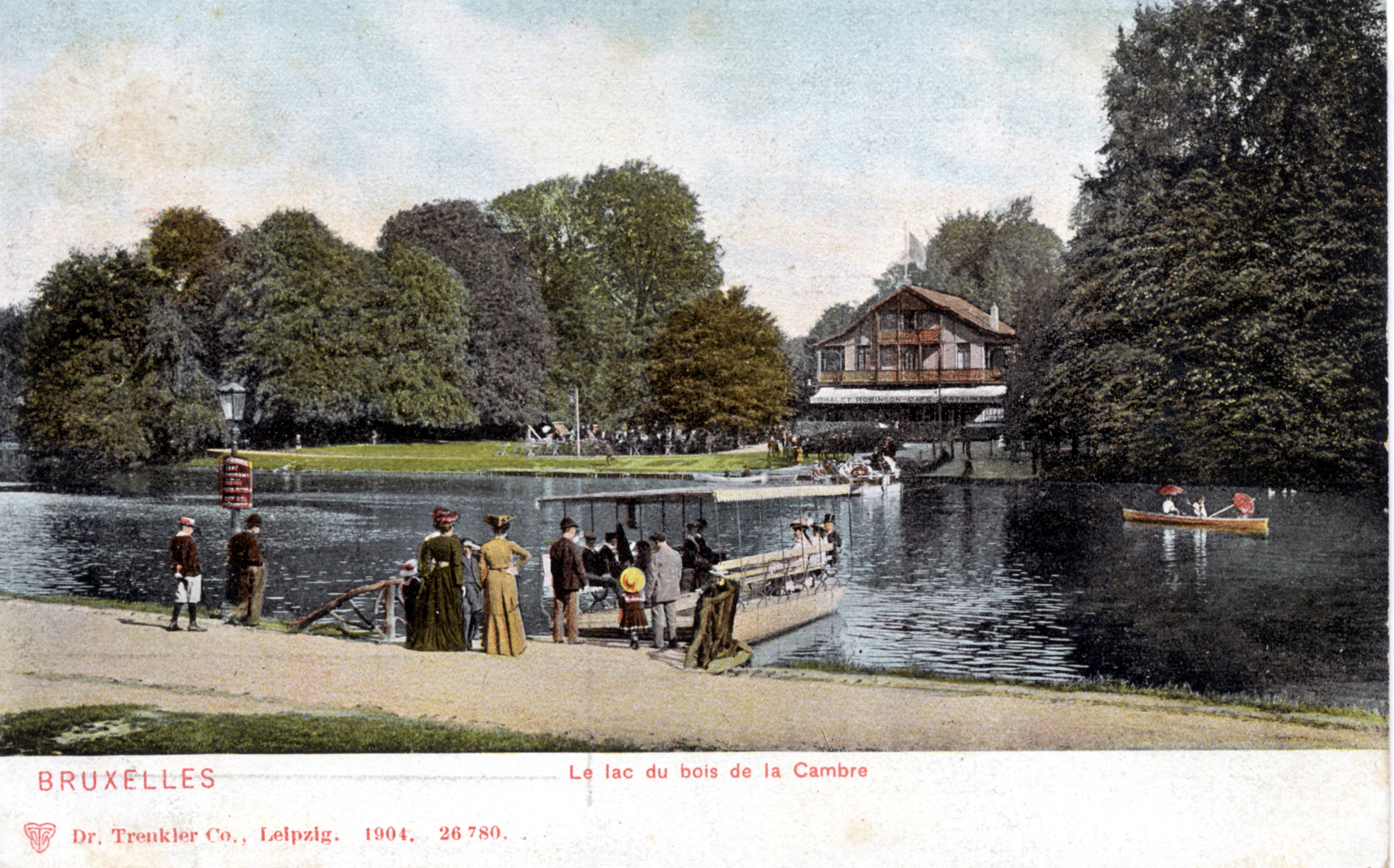 Description: In the middle of the Bois de la Cambre,the isle of the Chalet Robinson( postcard 1904)