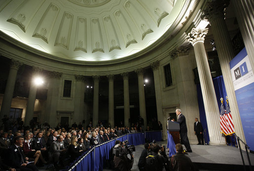 Description: George W. Bush at Manhattan Institute sponsored speech at Federal Hall on November 13, 2008