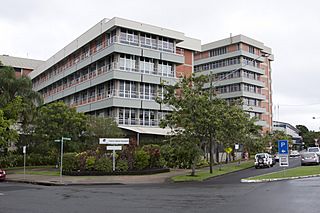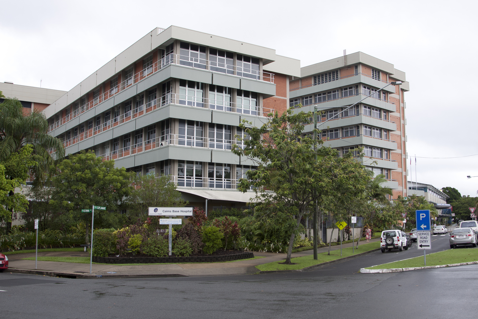 Description: View of the Cairns Base Hospital, located on the Esplanade in Cairns, Queensland, Australia