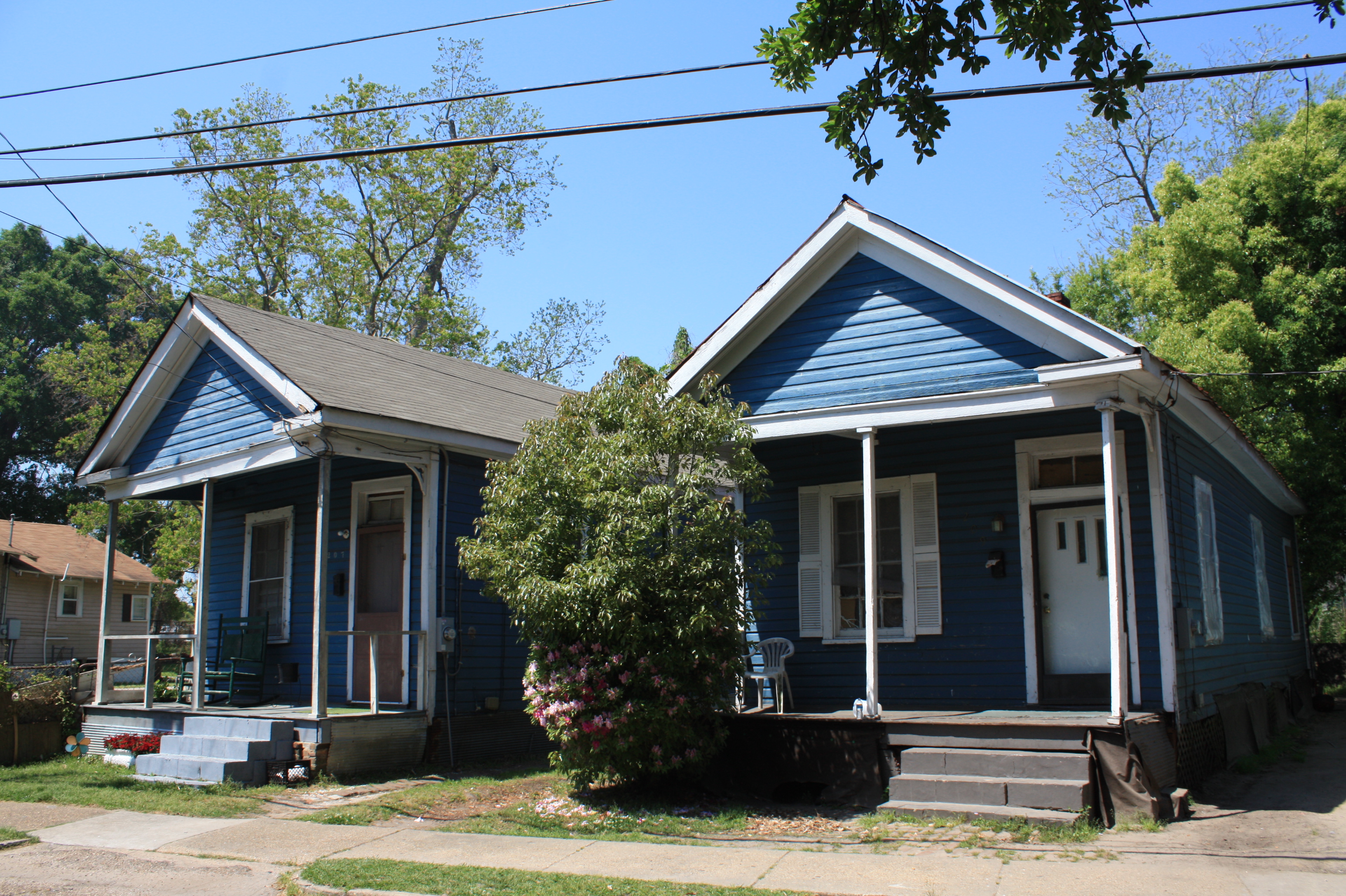 Description: Shotgun houses, both built in 1925, on North Ann Street in the Campground Historic District (on the National Register of Historic Places) in Mobile, Alabama, United States.