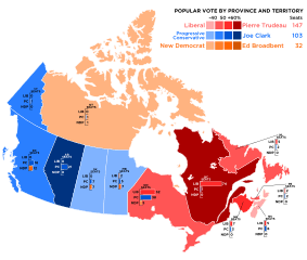 Description: Result of the popular vote in the 1980 Canadian federal election.