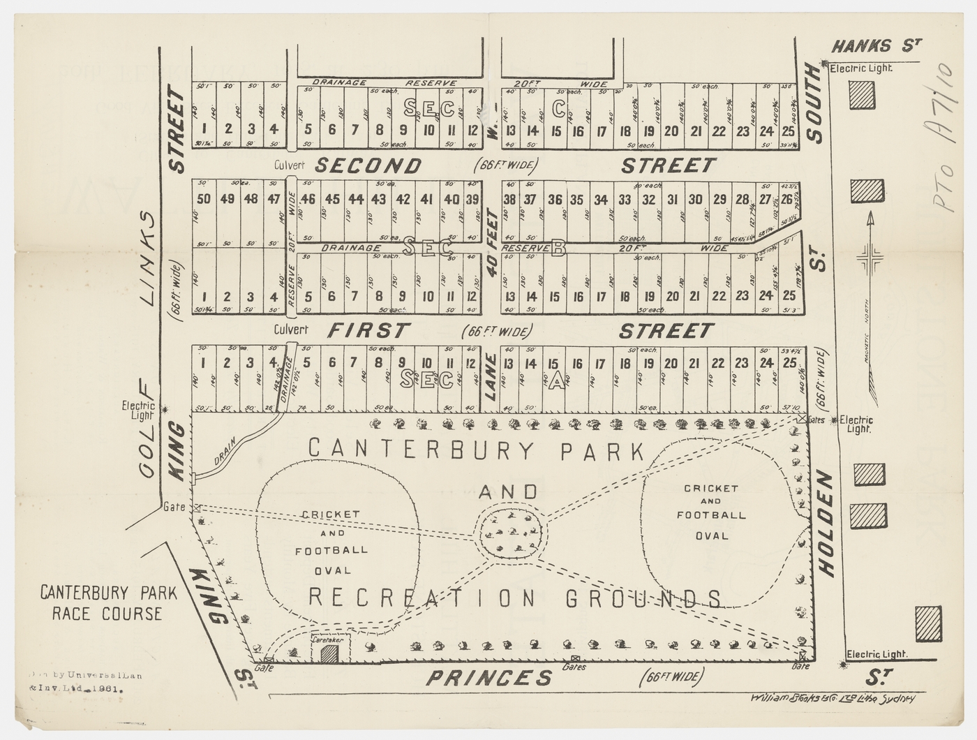 Description: Canterbury Park Race Course, c.1920, Princes St, First St, Second St, King St, Holden St, State Library of New South Wales Z/SP/A7/10