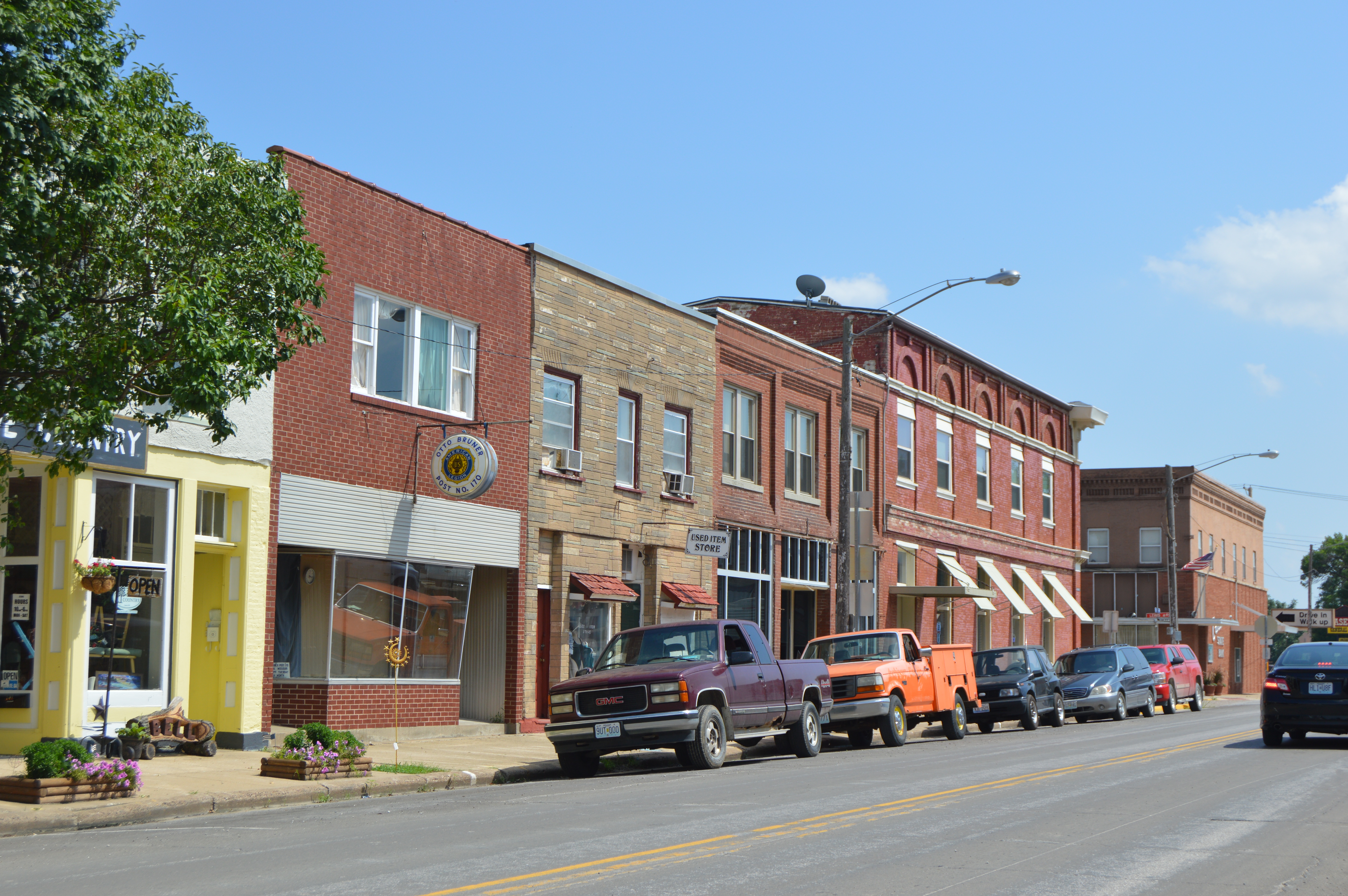 Description: Buildings on the eastern side of Fourth Street (formerly U.S. Route 61) between Lewis and Clark Streets in downtown Canton, Missouri, United States.