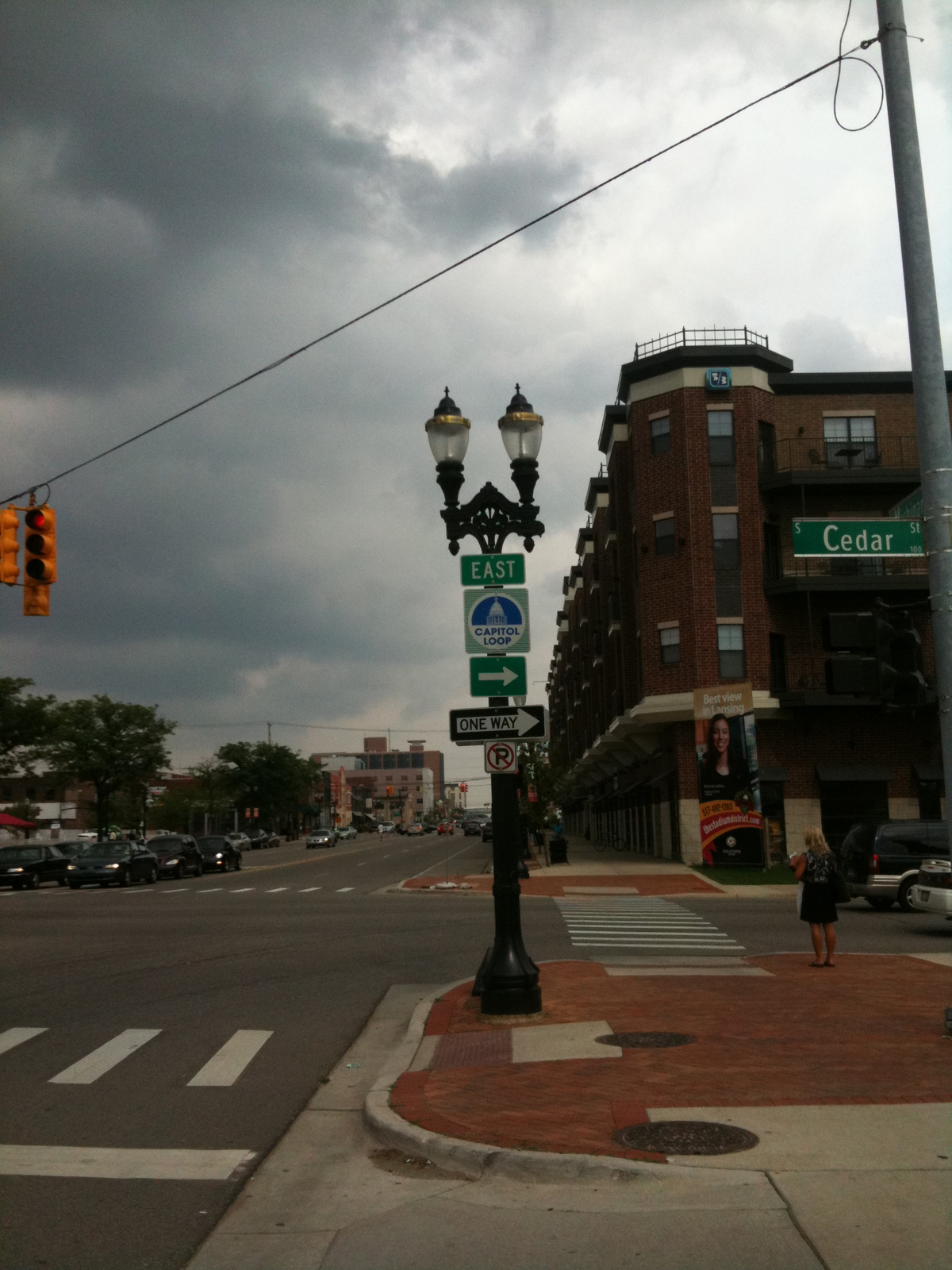 Description: A reassurance marker for the Capitol Loop at Michigan Avenue and Cedar Street in Lansing, Michigan