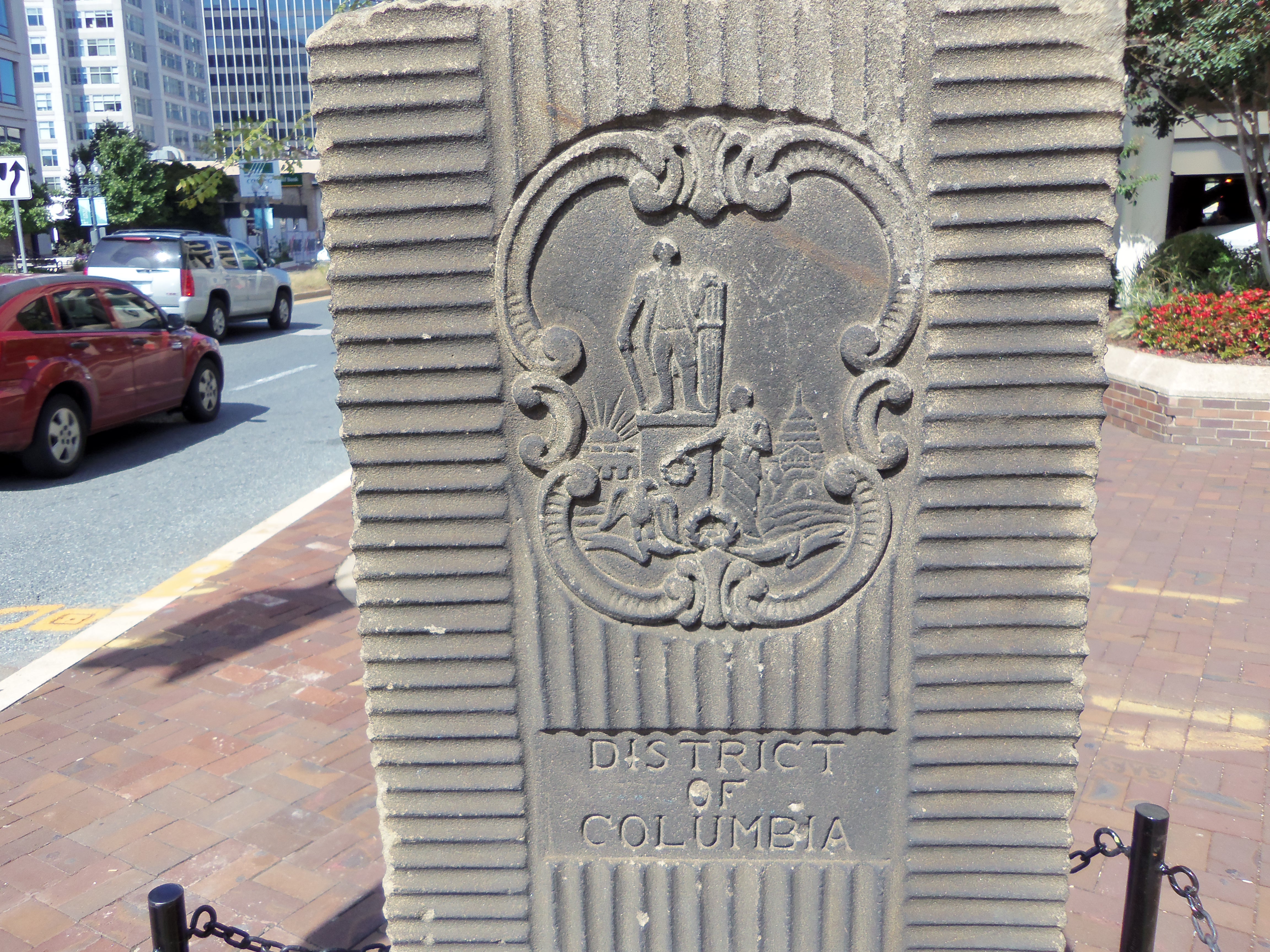 Description: The Cartouche of the District of Columbia found on the Garden Club of America entrance marker. This particular depiction is from the marker on the north side of Wisconsin Ave. NW at Chevy Chase, Maryland.