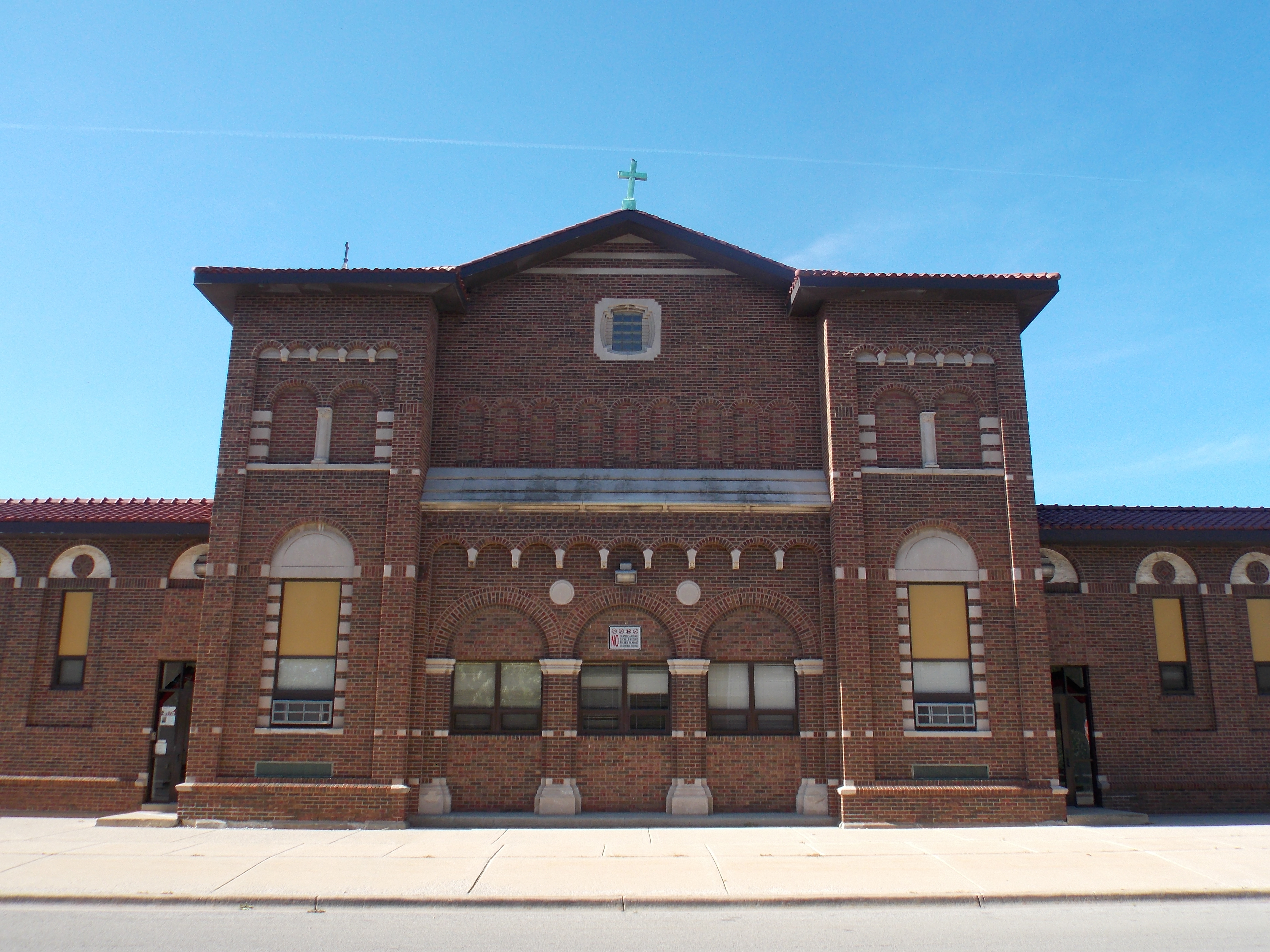 Description: The original Cathedral of St. Raymond Nonnatus in Joliet, Illinois is now part of the parish school.