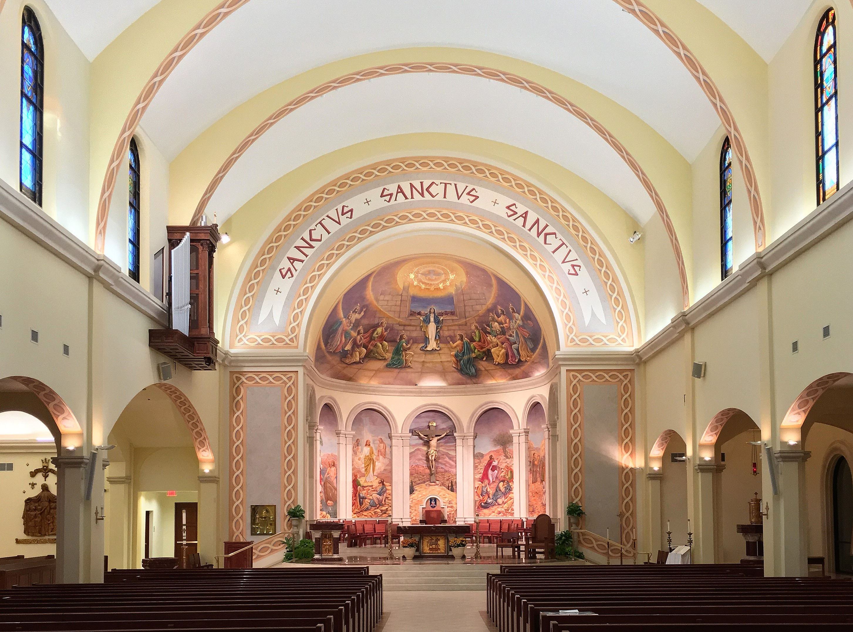 Description: Center isle looking towards main Altar of St. James Cathedral in Orlando, Florida.