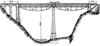 Description: original Kerstelenbach Bridge at km 47.9 of the Gotthardbahn spanning the Maderanertal in Amsteg, also showing later reinforcements of the bridge.