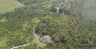 Description: Imagen aerea de la zona arqueologica de chacchoben