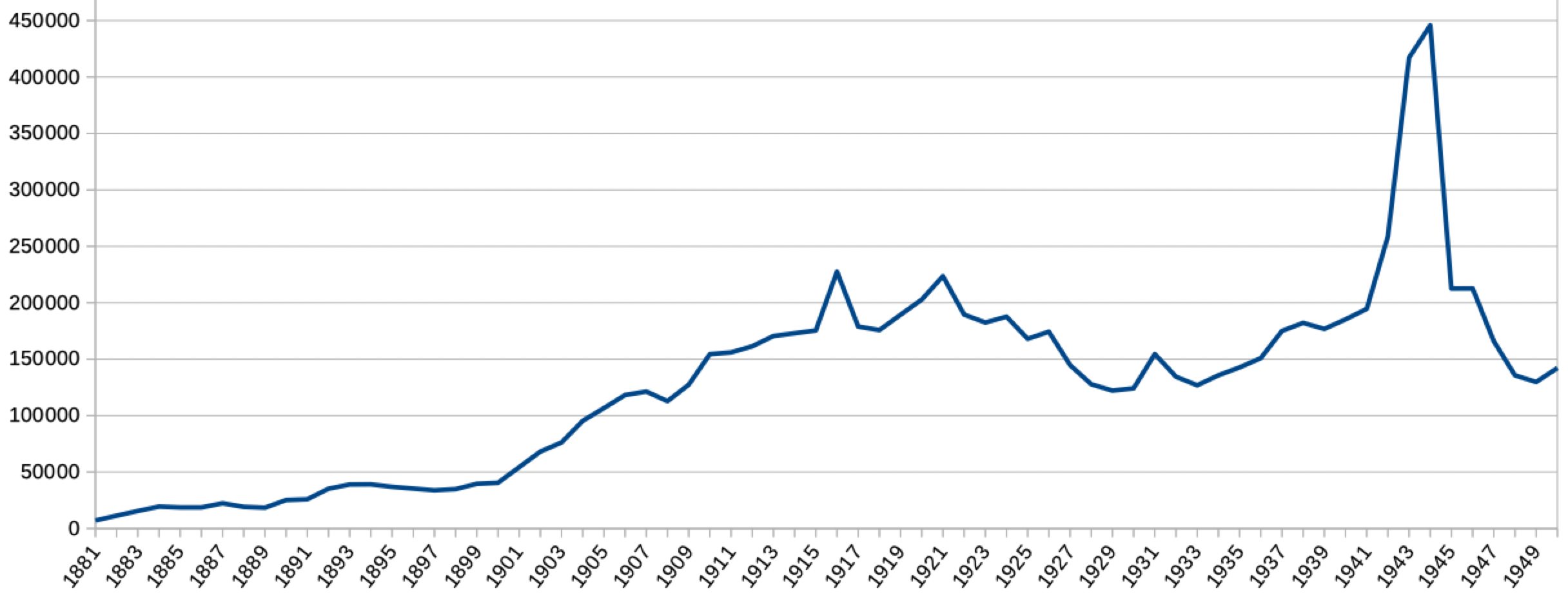 Image: Chart of Palmerston North railway station passengers 1881-1950