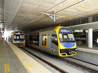Description: A pair of 4 car Oscar sets at Chatswood station operating the new Chatswood-Epping rail link.