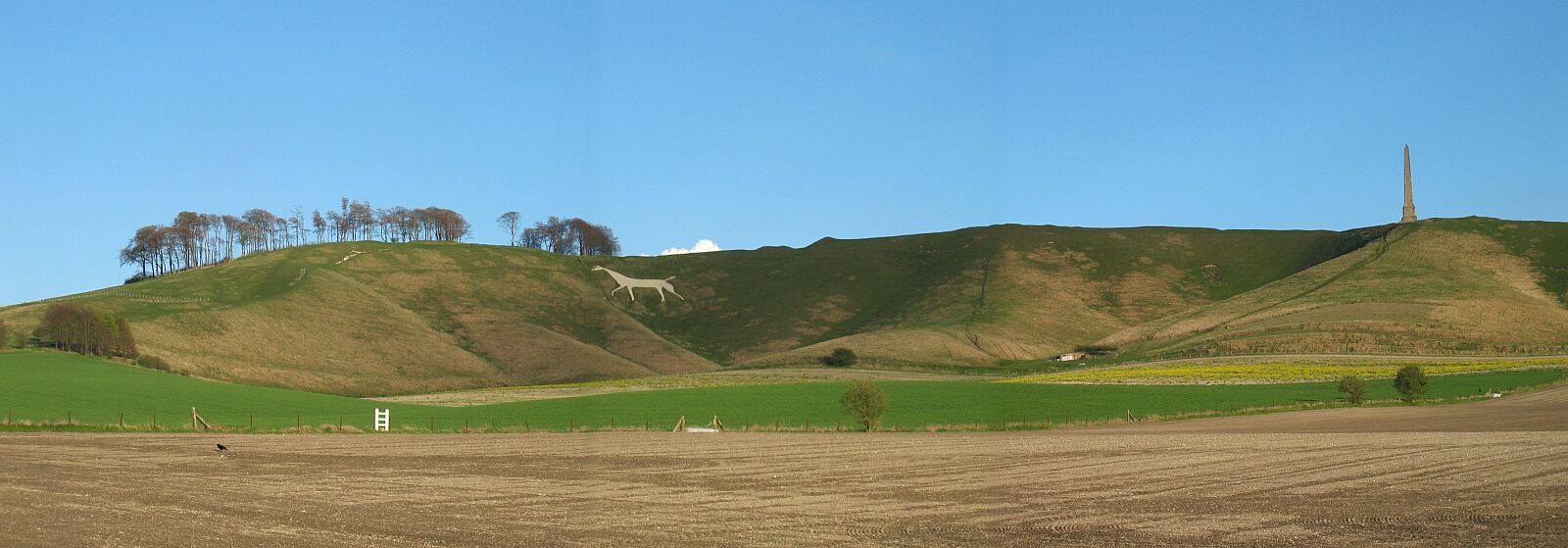 Description: Panorama of Cherhill White Horse and Landsdowne Monument