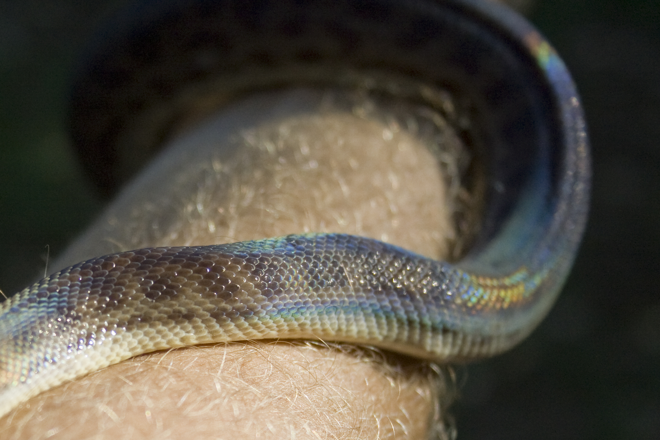 Description: A children's python (Antaresia childreni) exhibiting a rainbow sheen when exposed to sunlight.