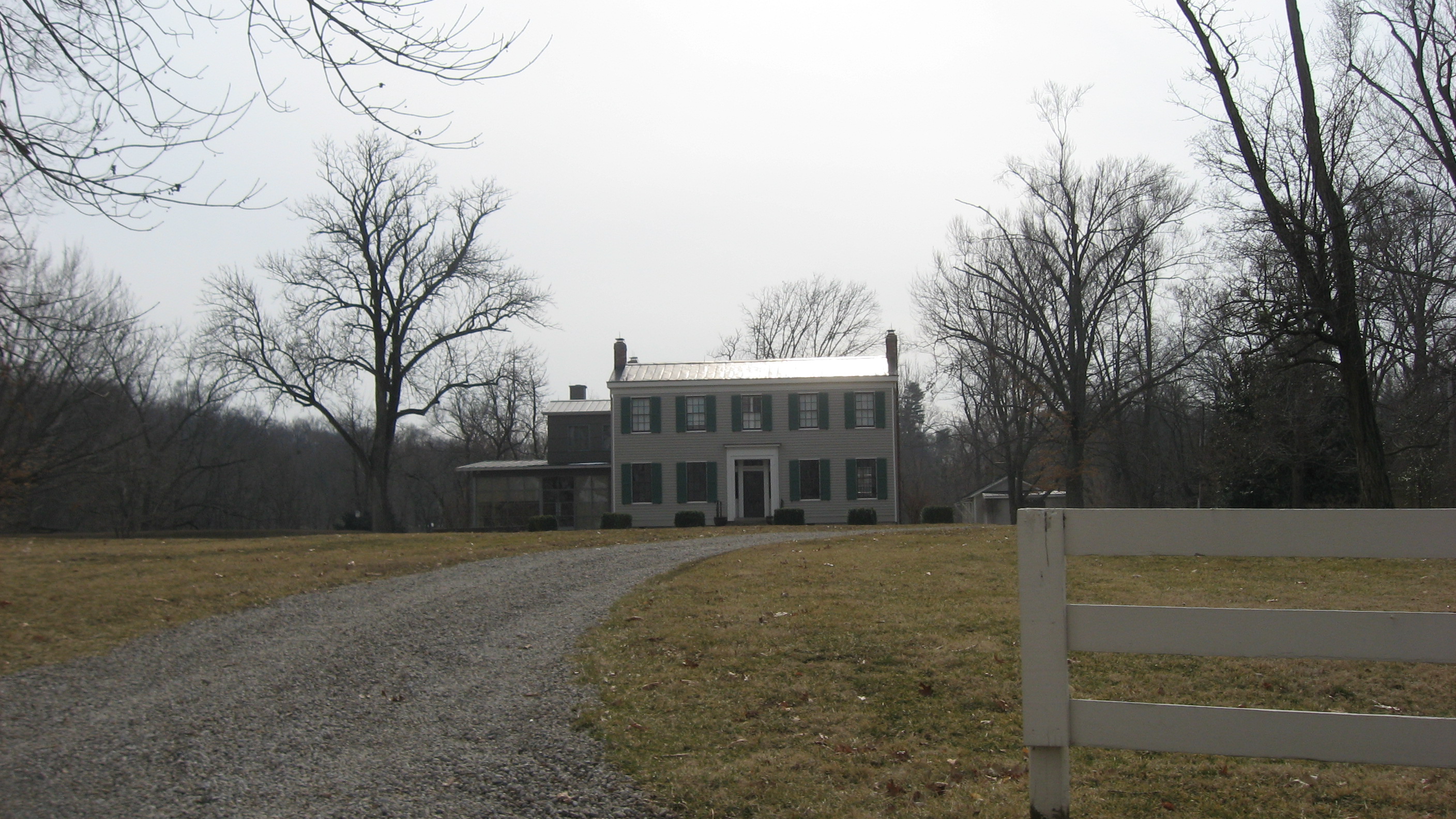Description: Front of the Chrisler House, located at 4508 Upper River Road in Harrods Creek, Kentucky, United States. Built in 1850, it is listed on the National Register of Historic Places.