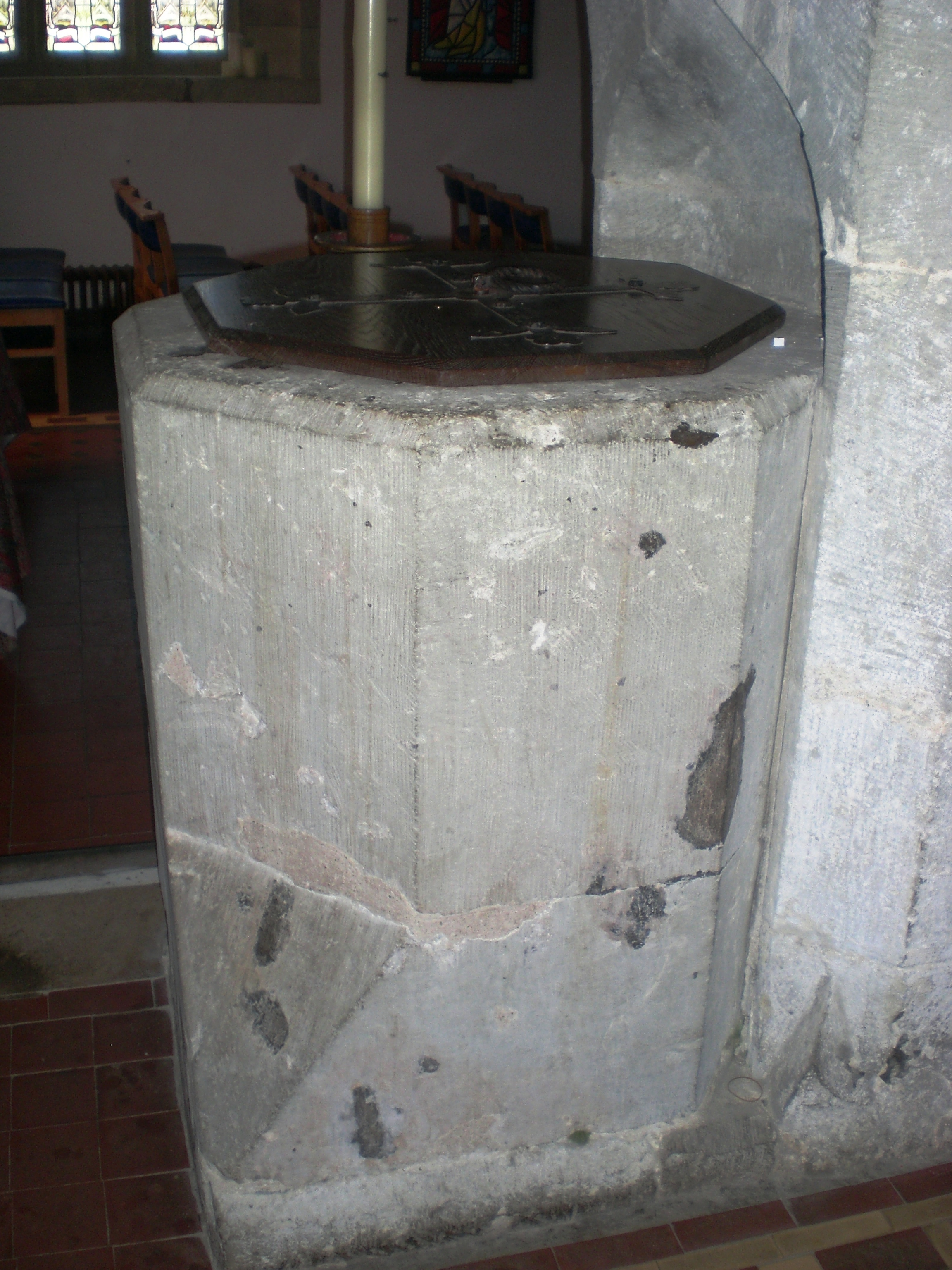Description: The font in the Church of St. Mary and St. Radegund in Whitwell on the Isle of Wight.