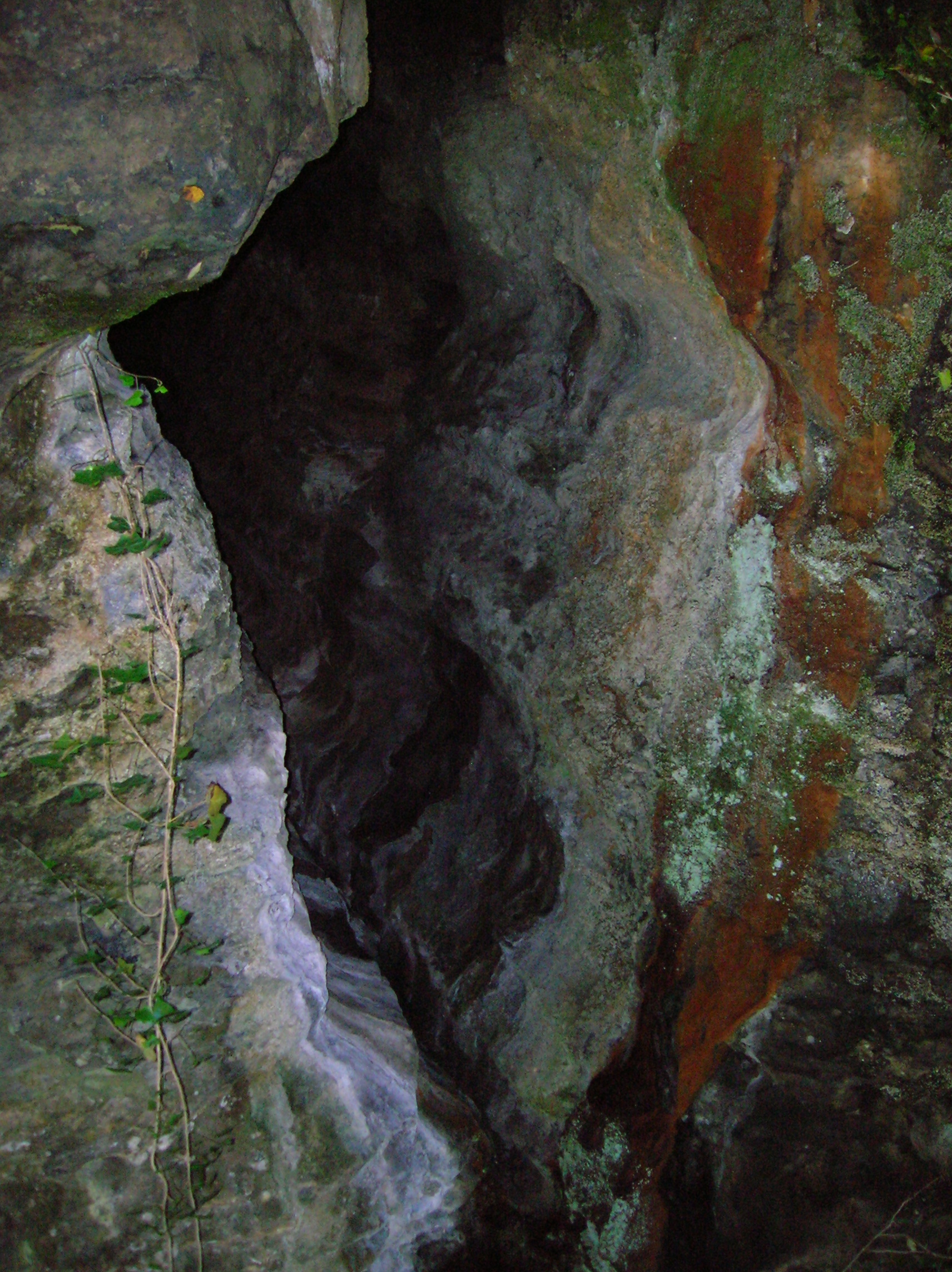Description: An entrance to the Cleeves Cove cave system on the Dusk Water, North Ayrshire, Scotland. Roger Griffith. October 2007.