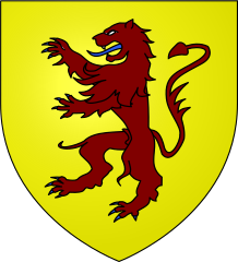 Description: Coat of arms of the Kingdom of Powys (-1160) then the Principality of Powys Wenwynwyn (1160-1283). Traditional Coat of Arms of the House Mathrafal of Powys then its senior branch Powys Wenwynwyn, and succeeding de la Pole then de Cherleton families. Blazon: Or, a lion Gules armed and langued Azure.