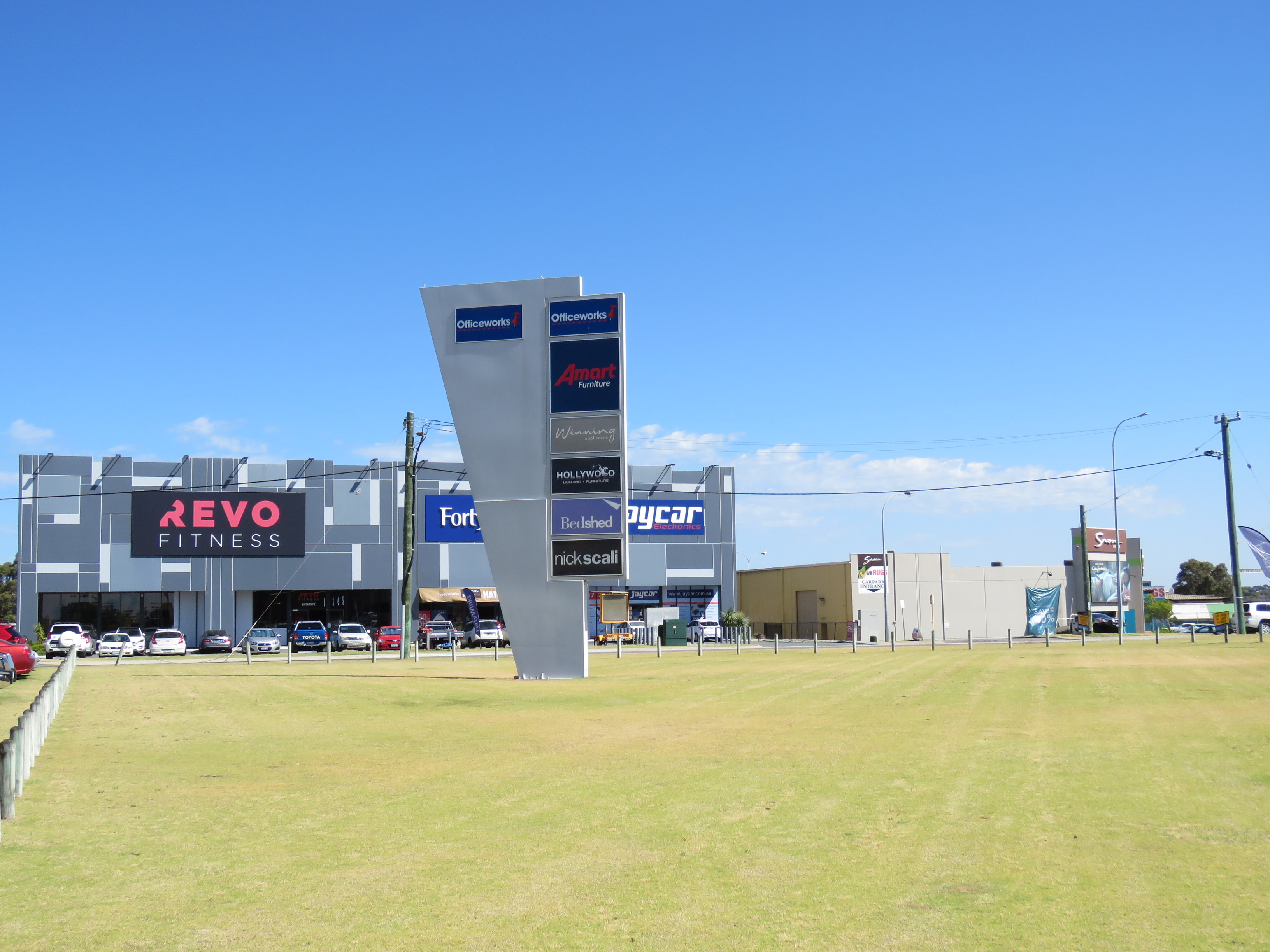 Description: Commercial buildings along Stock Road, O'Connor, Western Australia. The image has been taken from just south of the intersection of Stock and Stockdale Road/Garling Street.