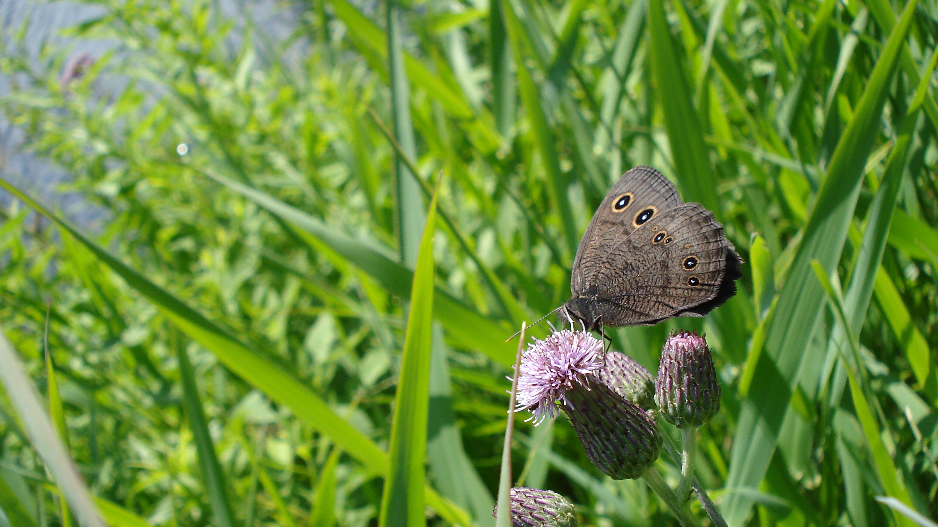 Description: Common Wood Nymph (Cercyonis pegala) in Thunder Bay, Ontario, Canada.