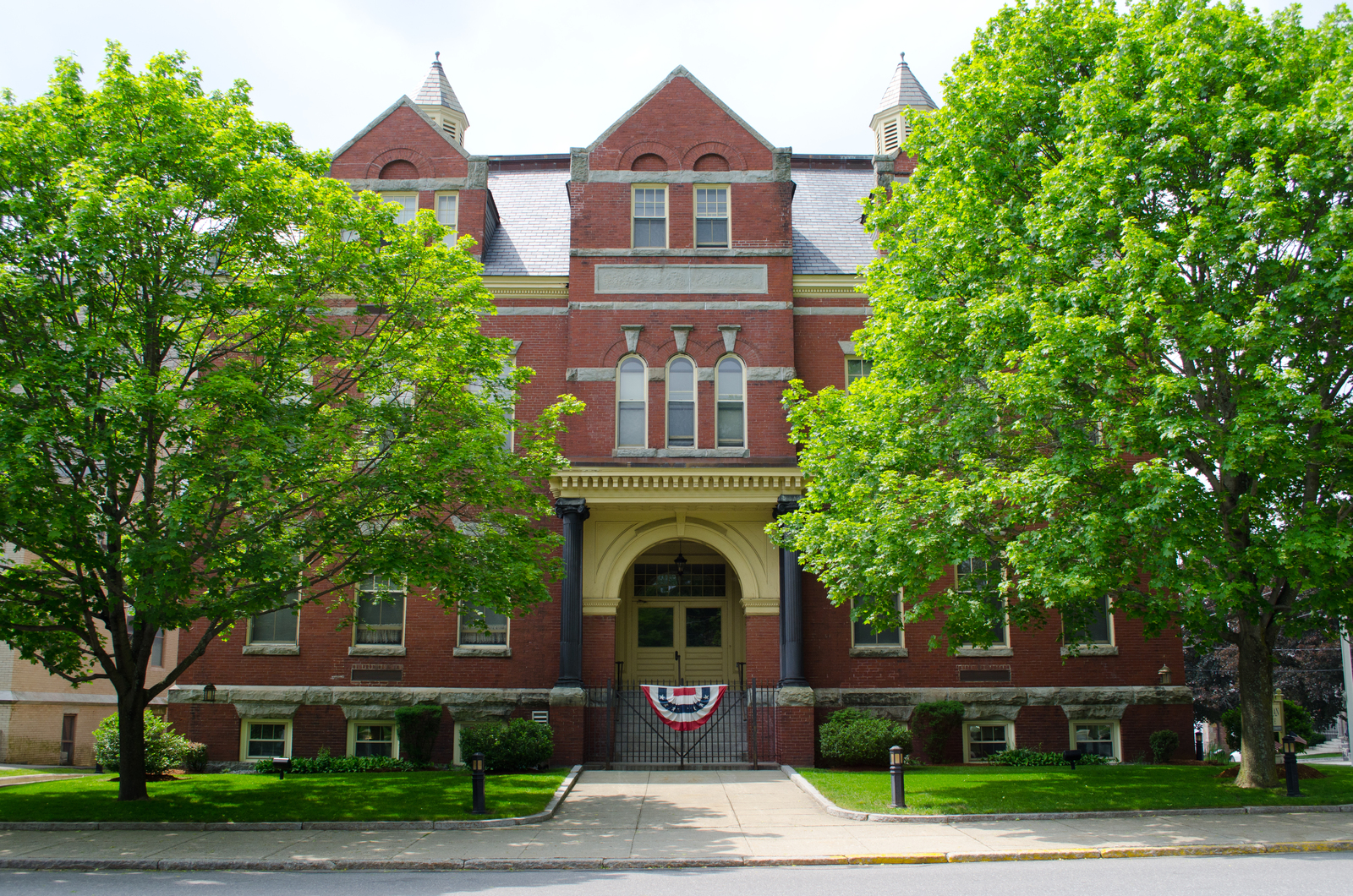 Description: The front face of the former Corcoran School at 40 Walnut Street, Clinton, Massachusetts.