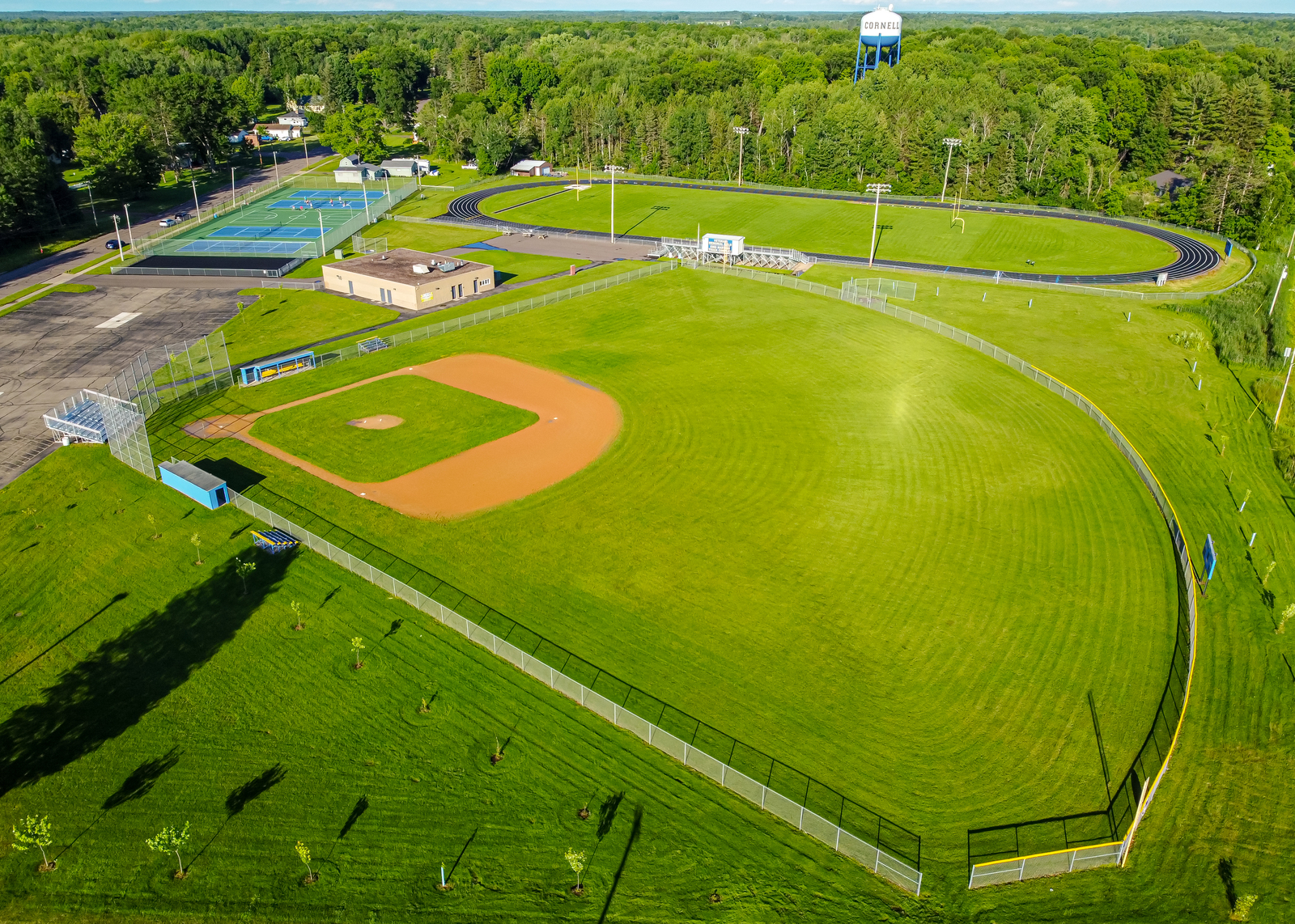 Description: Cornell High School athletic fields and water tower