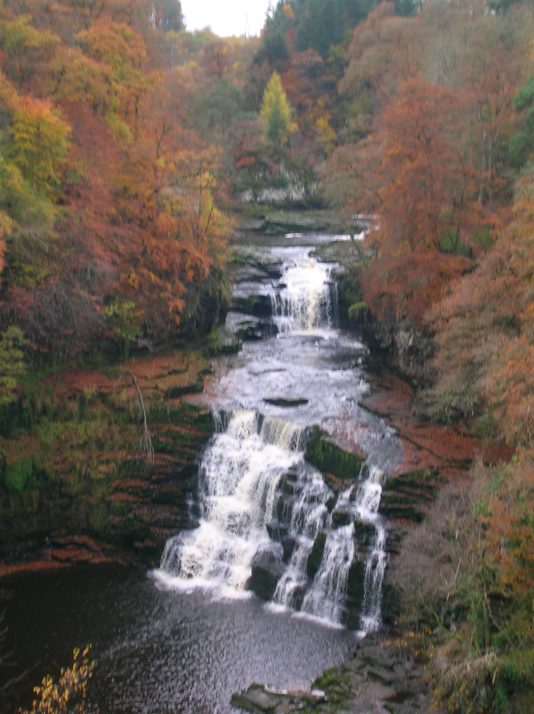 Description: Corra Linn on the river Clyde at New Lanark, Scotland.