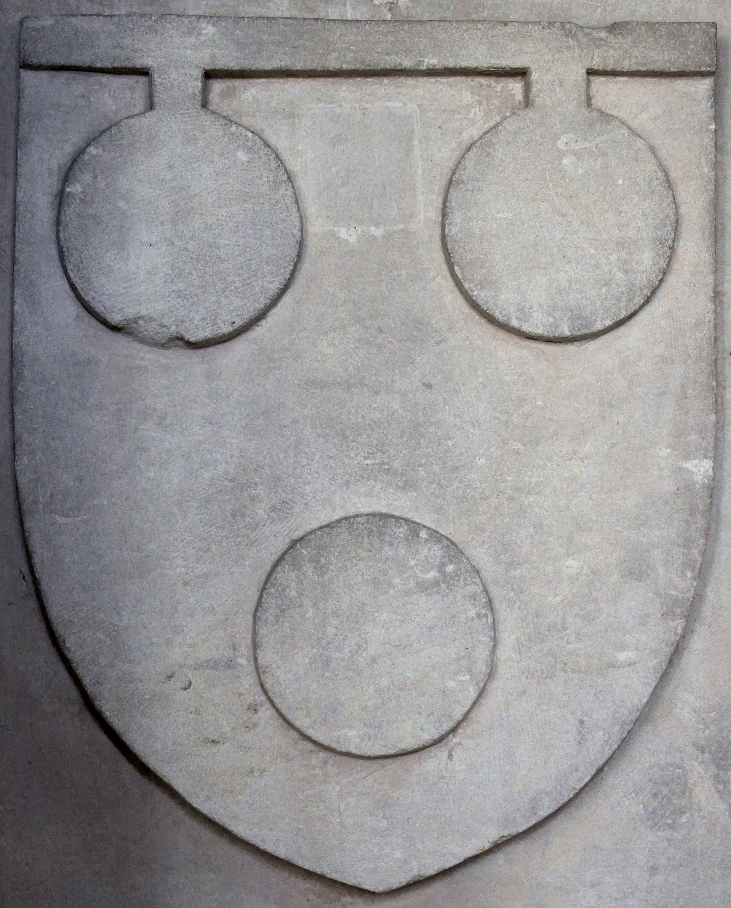 Description: Arms of Courtenay, Earls of Devon, sculpted on monument with female effigy in Colyton Church, Devon, said to be of Effigy identified by tradition as "little choke-a-bone", Margaret Courtenay (d.1512), an infant daughter of William Courtenay, 1st Earl of Devon (1475-1511) by his wife Princess Catherine of York (d.1527), the sixth daughter of King Edward IV (1461-1483) by Elizabeth Woodville. Otherwise identified as the wife of Thomas Courtenay, 5th/13th Earl of Devon (1414–1458), namely Lady Margaret Beaufort (c. 1409–1449), daughter of John Beaufort, 1st Marquess of Somerset, 1st Marquess of Dorset (1373-1410), KG, (later only 1st Earl of Somerset), (the first of the four illegitimate children of John of Gaunt, 1st Duke of Lancaster (4th son of King Edward III)
