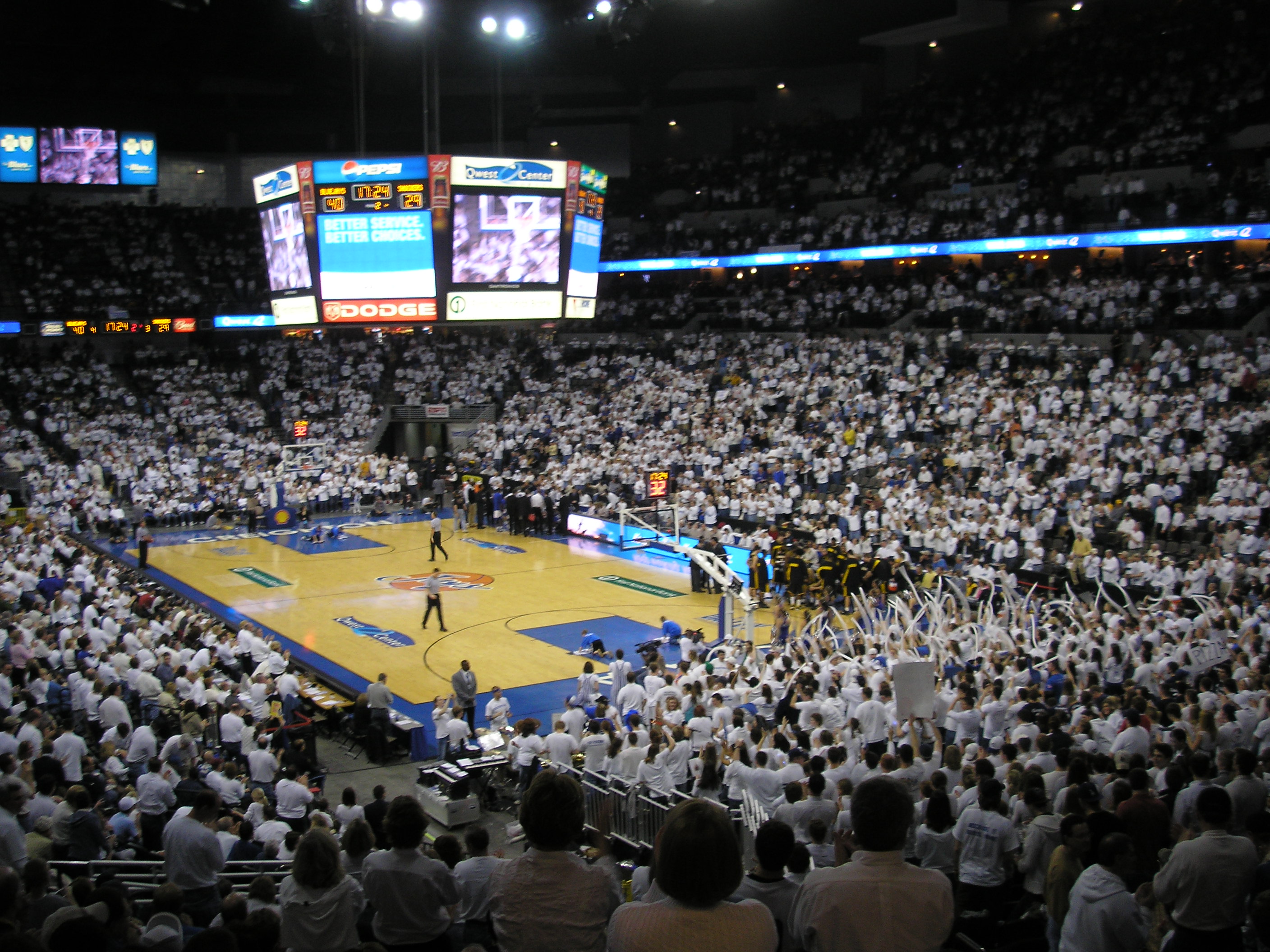 Image: Creighton Bluejays men's basketball playing (Qwest Center, Omaha, 2007)