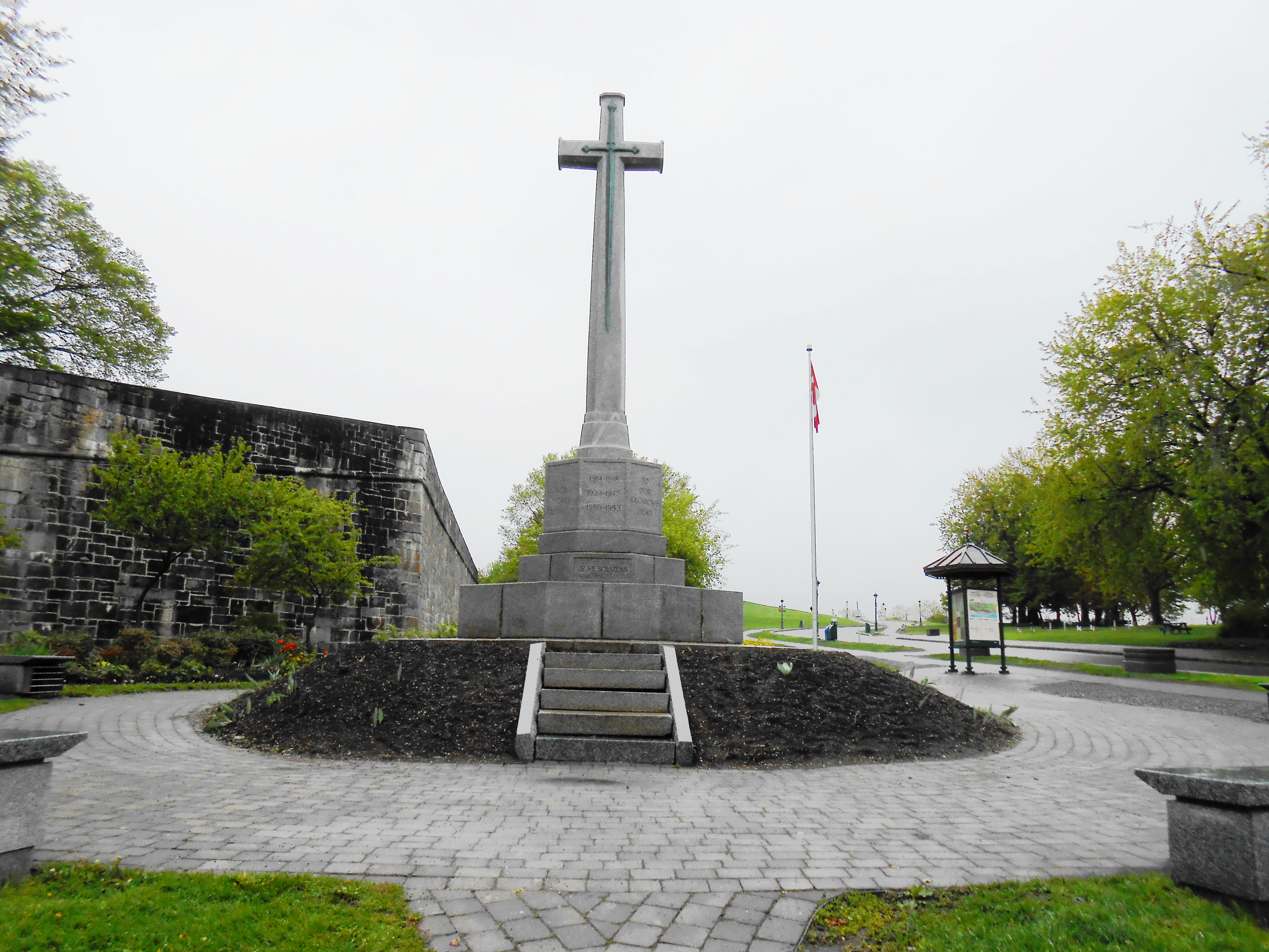 Description: La Croix du Sacrifice est située à l'angle de la Grande Allée Est et de l'avenue Georges-VI, à Québec. patrimoine-culturel.gouv.qc.ca « La Croix du Sacrifice fut dévoilée le 1er juillet 1924 par le gouverneur-général du Canada, Lord Bing de Vimy. En novembre 1947, il y eut une nouvelle cérémonie de dédicace et de bénédiction, présidée par le lieutenant-gouverneur de la province de Québec, Sir Eugène Fiset. L'inscription se lit : « à nos morts glorieux ; 1914-1918, 1939-1945, 1950-1953 ; to our glorious dead ; Je me souviens » » – cdli.ca