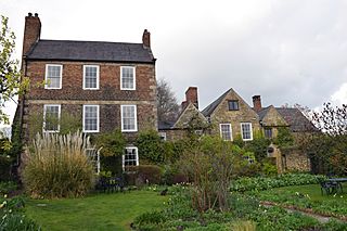 Description: w:Crook Hall, Durham, from its formal gardens. The 18th century house is to the left, then the 17th century link in the centre; the roof of the medieval hall is visible to the right.
