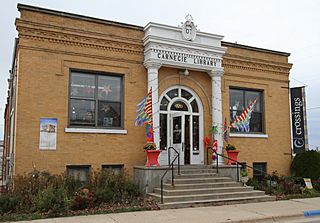 Description: Crossings at Carnegie, an art gallery and performance space in a 1907 Carnegie library, 320 East Street, Zumbrota, Minnesota, United States