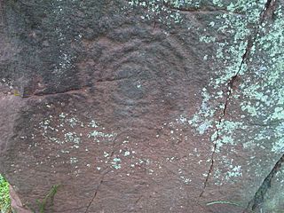 Description: Image of one of three "cup and ring" markings on the Long Meg Bronze Age standing stone, northern England