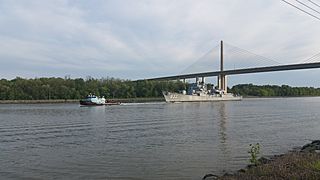 Description: DD-933 being towed up the C&D Canal on May 8, 2016 as it passes beneath the Roth Bridge