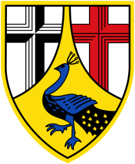 Description: The arms were granted on July 14, 1927. The two crosses in the arms are derived from the arms of the Electorate of Cologne (sable) and Electorate of Trier (gules). Both electorates had many possessions in the district. The peacock is taken from the arms of the Counts of Wied (since 1784 Princes of Wied-Neuwied), who were the most important local noble family for many centuries.