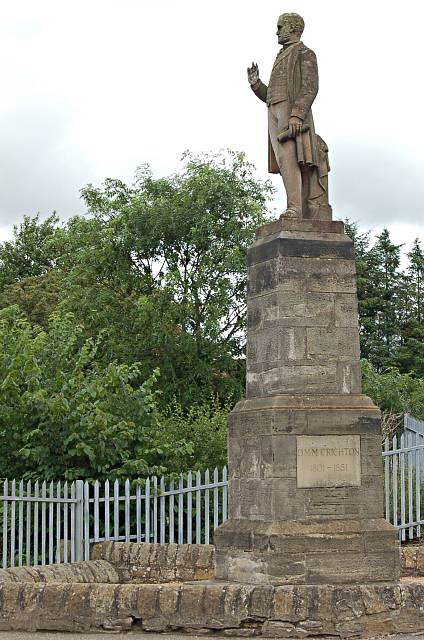 Description: DMM Crichton 1801-51. David MM Crichton 1801 to 1851 Free Church man and politician. His statue stands looking out across the railway bridge he fought for when the railways only wanted to provide a cheaper level crossing.