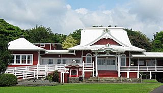 Description: The Daifukuji Sōtō Mission is a Zen Buddhist temple on the island of Hawaiʻi established in 1914 near Honalo. It was added to the National Register of Historic Places on April 21, 1994.