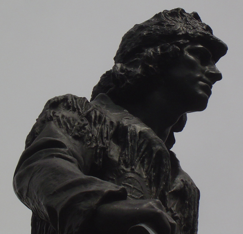 Description: Head and torso detail of statue of Daniel Boone by Enid Yandell, on Eastern Parkway in Louisville.