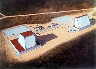 Description: An artist's concept of the receiver and transmitter of the Soviet large phased-array ballistic missile detection and tracking radar at Pechora.