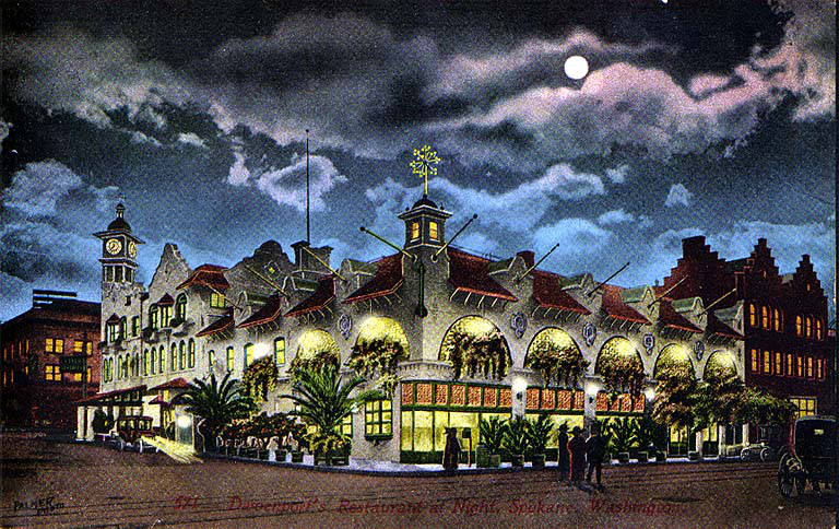 Description: Caption on image: 571 Davenport's Restaurant at night, Spokane, Washington Subjects (LCSH): Davenport's Hotel (Spokane, Wash.); Restaurants--Washington (State)--Spokane